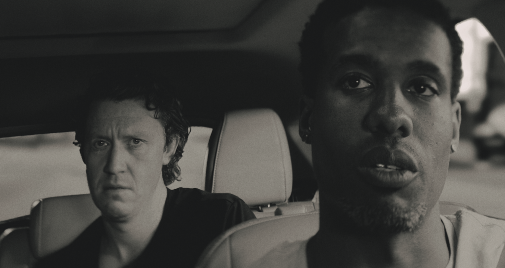 Unflinching in this very purpose, the narrative follows what should be the most overall mundane of circumstances…a ride share and the subsequent conversations being had between driver and his passenger…that take a sudden and tense upsurge in fervency when certain topics arise that are conspicuously agitating, primarily with the passenger, could be leading to something even more ominous. The ambiance that is created here is masterfully executed, feeding into precisely what is indicated in that aforementioned synopses above, with the combination of consistently character-centric camera focus, varying imagery associated with it that provides context both blatant and veiled, the black and white palette as opposed to color adds another layer to the film’s aesthetic and tonal directions, and just the intelligently written dialogue between the two men that skillfully guides you through this friendly then uneasy atmosphere.